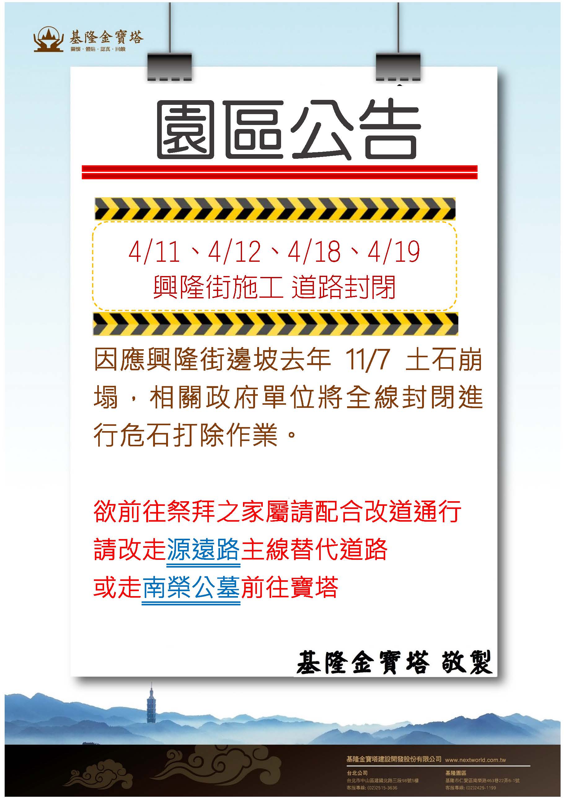 115年園區公告,興隆街施工道路封閉時間,車輛請改道